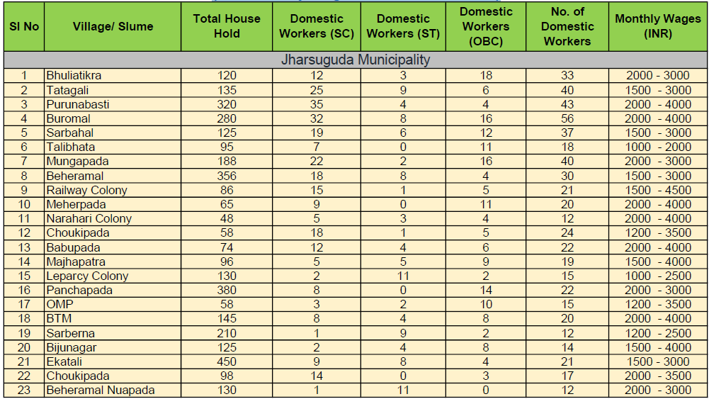 Survey of Domestic Workers in Jharsuguda and Brajrajnagar Municipalities (Facilitated by Progressive Shramik Manch)